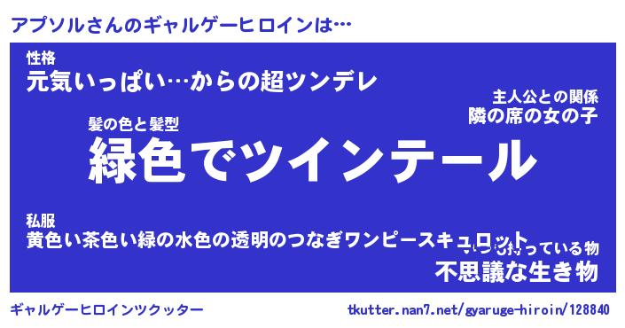 | 意味不明あだ名 | 『ペロリンアプソル』『永久保存アプソル』 |