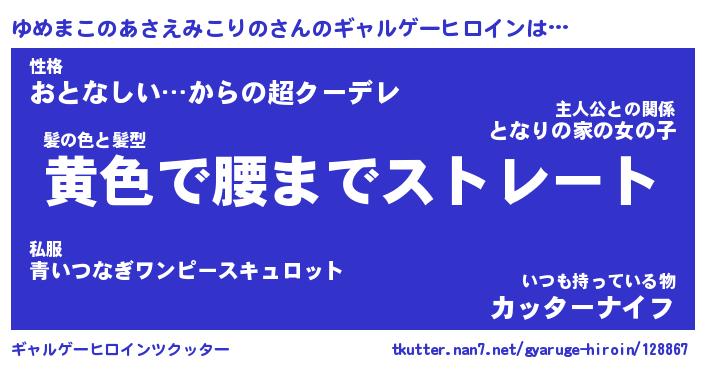 | ツイッター | ゆめまこのあさえみこりのさんのツイッターID『namakemono_star』 |