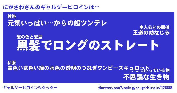 | 女子向けラノベタイトル風あだ名 | 『(仮)にがさわのやんごとなき事情』 |