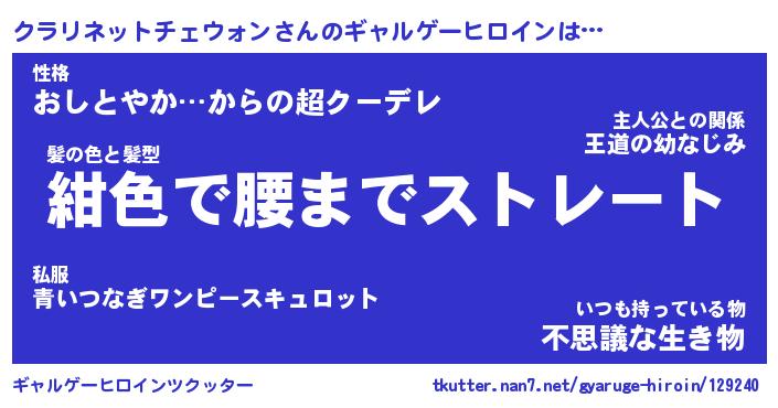 | 男性向けラノベタイトル風あだ名 | 『クラリネットチェウォンアートオンライン』 |
