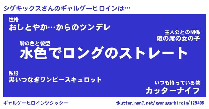 | 男性向けラノベタイトル風あだ名 | 『シゲキックスの憂鬱』 |