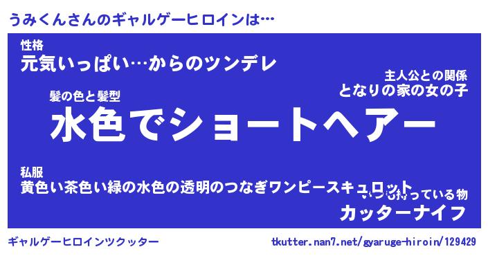 | ヘコむあだ名 | 『うみにゅー』『なまこ酢』『うみお』 |