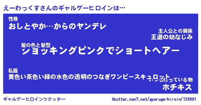 | 女子向けラノベタイトル風あだ名 | 『(仮)えーわっくすのやんごとなき事情』 |