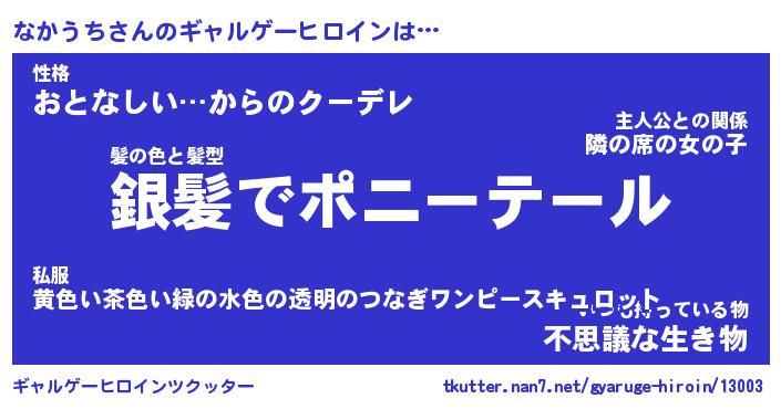| 女子向けラノベタイトル風あだ名 | 『なかうち姫と円卓の騎士』 |
