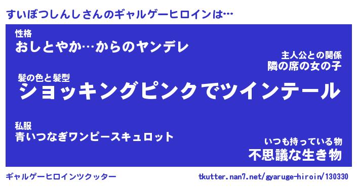 | 女子向けラノベタイトル風あだ名 | 『(仮)すいぼつしんしのやんごとなき事情』 |