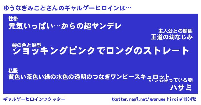 | 女子向けラノベタイトル風あだ名 | 『(仮)ゆうなぎみことのやんごとなき事情』 |