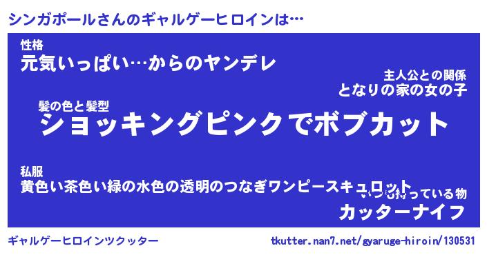 | 男性向けラノベタイトル風あだ名 | 『シンガポールの憂鬱』 |
