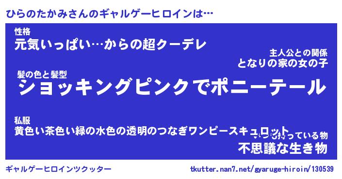 | 女子向けラノベタイトル風あだ名 | 『(仮)ひらのたかみのやんごとなき事情』 |