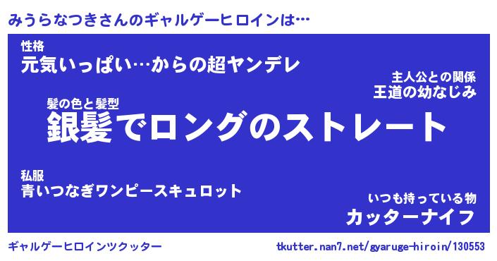 | ヒーロー風カッコイイあだ名 | 『スーパーミウラナツキ』『幻影騎士ミウ』 |