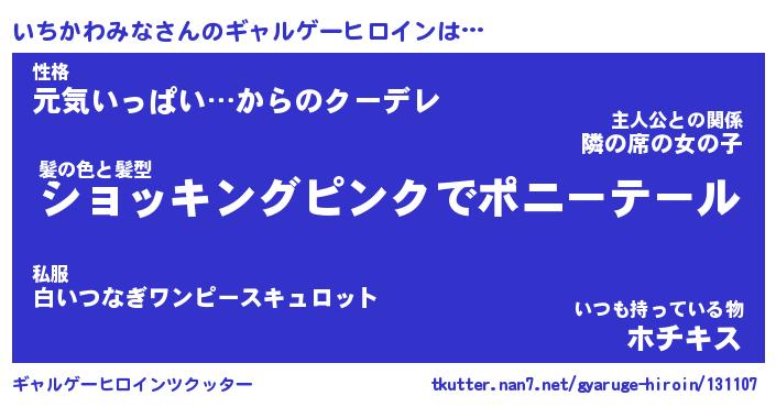 | ヒーロー風カッコイイあだ名 | 『スーパーイチカワミナ』『天弓騎士イチ』 |