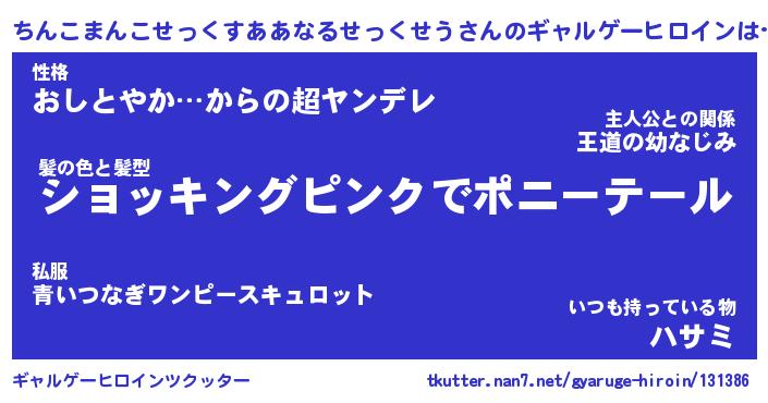 | ポケモン風あだ名 | 『チンチュウ』『チンコダネ』 |