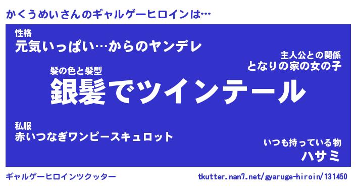 | 男性向けラノベタイトル風あだ名 | 『かくうめいの憂鬱』 |