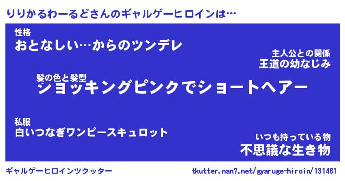 | 女子向けラノベタイトル風あだ名 | 『(仮)りりかるわーるどのやんごとなき事情』 |