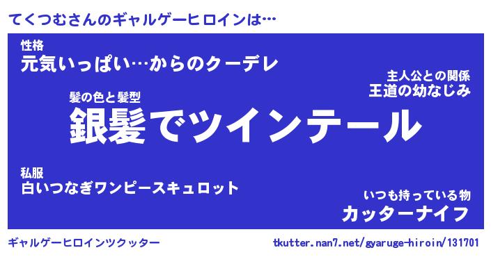 | 男性向けラノベタイトル風あだ名 | 『てくつむの憂鬱』 |