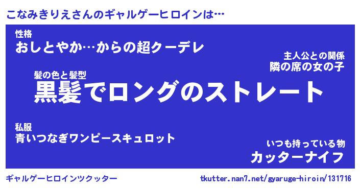 | 女子向けラノベタイトル風あだ名 | 『(仮)こなみきりえのやんごとなき事情』 |