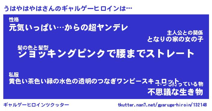 | ヘコむあだ名 | 『うはにー』『なまこ酢』『うは太郎』 |