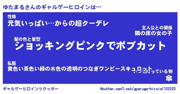 | 女子向けラノベタイトル風あだ名 | 『(仮)ゆたまるのやんごとなき事情』 |