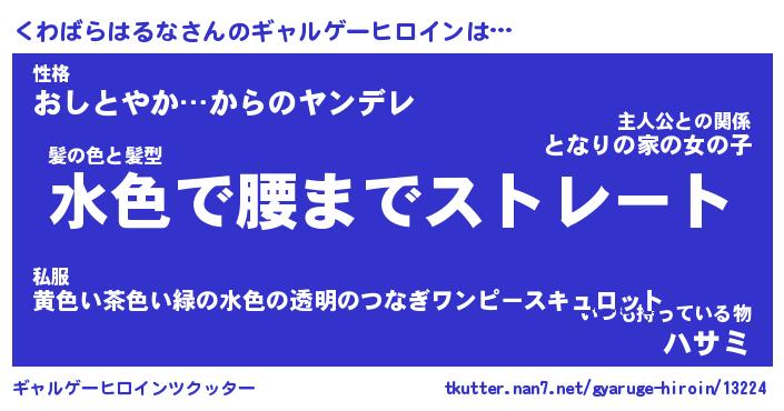 | 男性向けラノベタイトル風あだ名 | 『くわばらはるなの憂鬱』 |