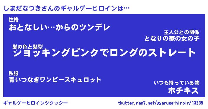 | 女子向けラノベタイトル風あだ名 | 『(仮)しまだなつきのやんごとなき事情』 |
