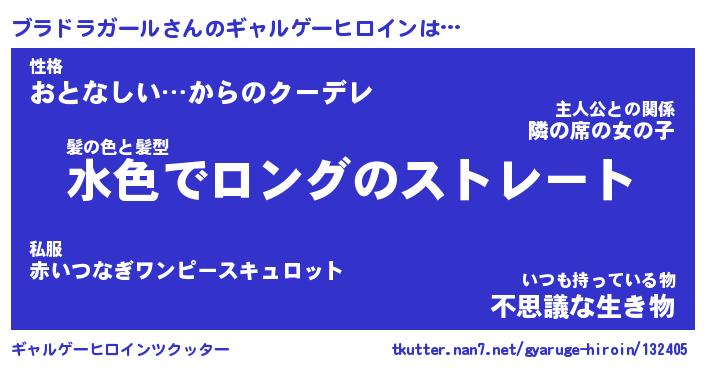 | 女子向けラノベタイトル風あだ名 | 『(仮)ブラドラガールのやんごとなき事情』 |