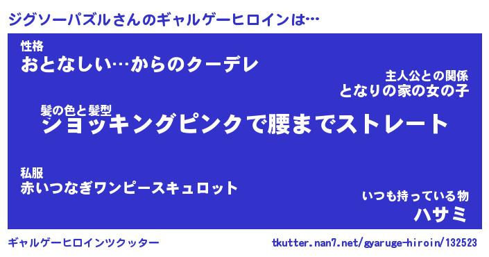 | 女子向けラノベタイトル風あだ名 | 『(仮)ジグソーパズルのやんごとなき事情』 |