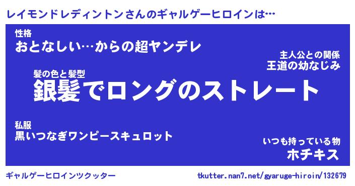 | 男性向けラノベタイトル風あだ名 | 『レイモンドレディントンの憂鬱』 |