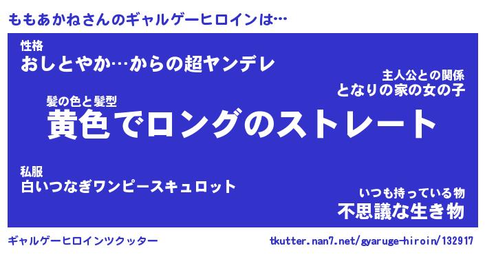 | ファンタジー風あだ名 | 『モモフェル』『エターナルモモアカネー』 |