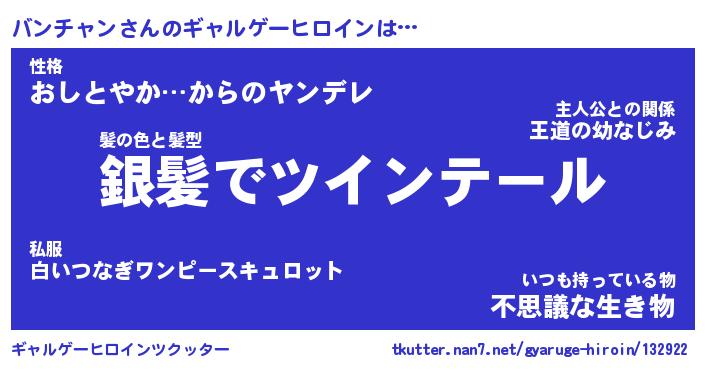 | ファンタジー風あだ名 | 『バンフェル』『エターナルバンチャンー』 |