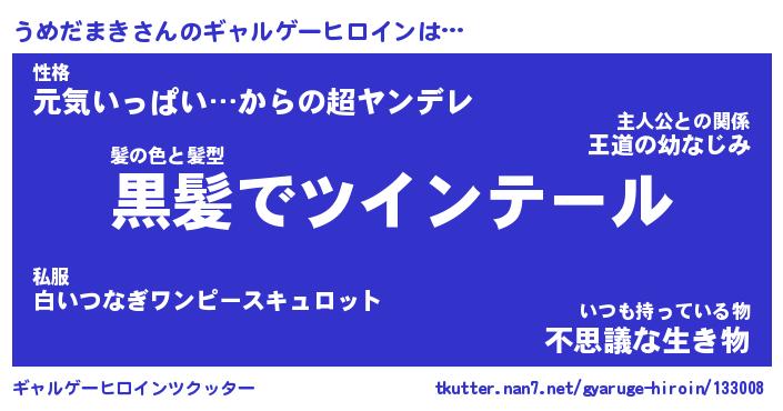 | ヒーロー風カッコイイあだ名 | 『スーパーウメダマキ』『幻影騎士ウメ』 |