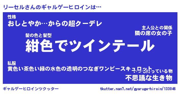 | ファンタジー風あだ名 | 『リーフェル』『エターナルリーセルー』 |