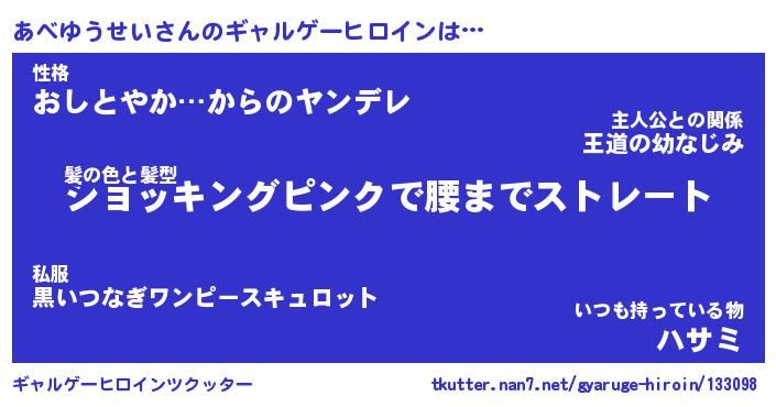 | 女子向けラノベタイトル風あだ名 | 『(仮)あべゆうせいのやんごとなき事情』 |