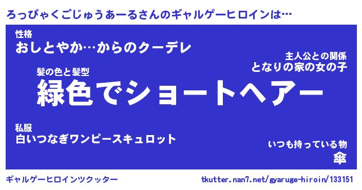 | ヒーロー風カッコイイあだ名 | 『スーパーロッピャクゴジュウアール』 |