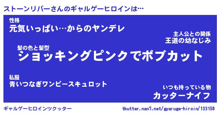 | ツイッター | ストーンリバーさんのツイッターID『renkon_nyan』 |
