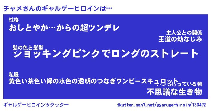 | 女子向けラノベタイトル風あだ名 | 『(仮)チャメのやんごとなき事情』 |