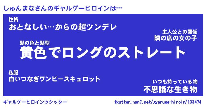 | ファンタジー風あだ名 | 『シュフェル』『エターナルシュンマナー』 |
