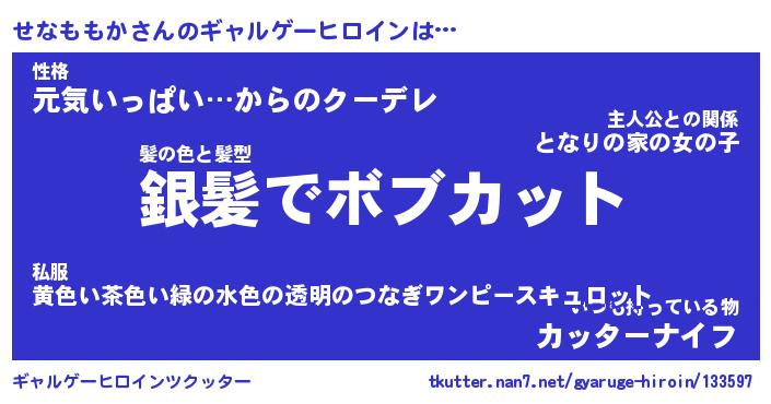 | 男性向けラノベタイトル風あだ名 | 『せなももかの憂鬱』 |