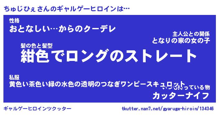 | 男性向けラノベタイトル風あだ名 | 『チュジヒェアートオンライン』 |