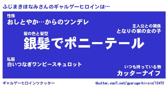 | 女子向けラノベタイトル風あだ名 | 『ふじまきほなみ姫と円卓の騎士』 |