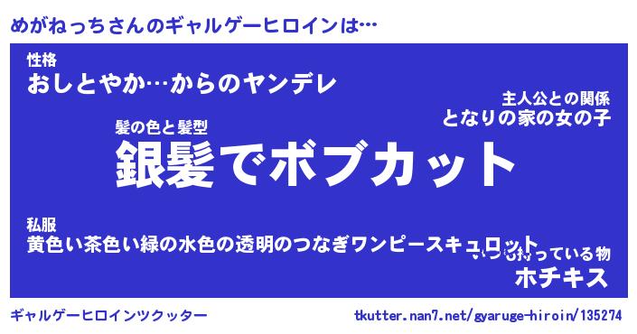 | 2回繰り返すあだ名 | 『めがめが』『めめがが』『ぬれぬれ』 |
