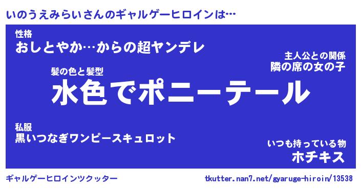| 男性向けラノベタイトル風あだ名 | 『いのうえみらいの憂鬱』 |