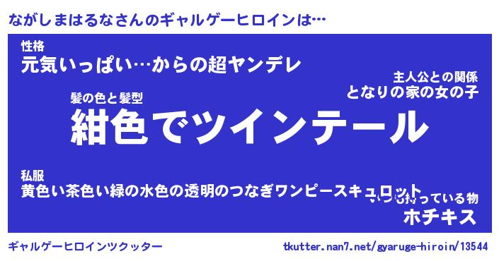 | 女子向けラノベタイトル風あだ名 | 『誰かこのながしまはるなを説明してください! ~契約から始まるウェディング~』 |
