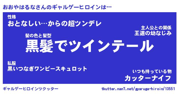 | 男性向けラノベタイトル風あだ名 | 『おおやはるなの憂鬱』 |
