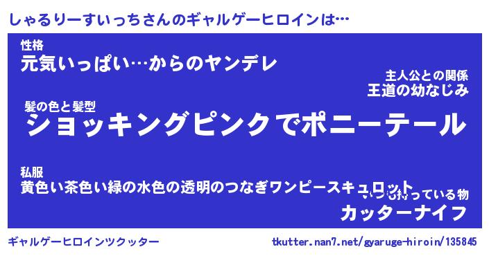 | 女子向けラノベタイトル風あだ名 | 『(仮)しゃるりーすいっちのやんごとなき事情』 |