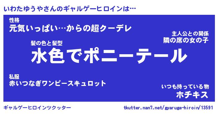 | ヒーロー風カッコイイあだ名 | 『スーパーイワタユウヤ』『天弓騎士イワ』 |