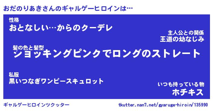 | 女子向けラノベタイトル風あだ名 | 『(仮)おだのりあきのやんごとなき事情』 |