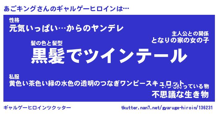 | ファンタジー風あだ名 | 『アゴフェル』『エターナルアゴキングー』 |