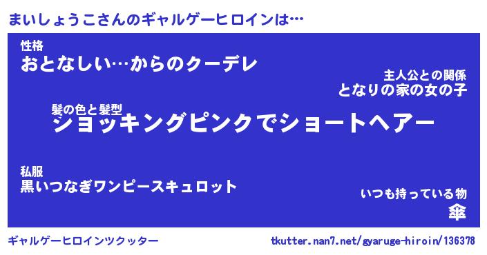| 女子向けラノベタイトル風あだ名 | 『(仮)まいしょうこのやんごとなき事情』 |