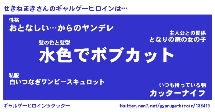 | 女子向けラノベタイトル風あだ名 | 『(仮)せきねまきのやんごとなき事情』 |