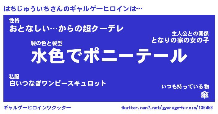| 男性向けラノベタイトル風あだ名 | 『はちじゅういちの憂鬱』 |