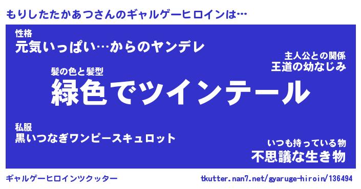 | 男性向けラノベタイトル風あだ名 | 『モリシタタカアツアートオンライン』 |